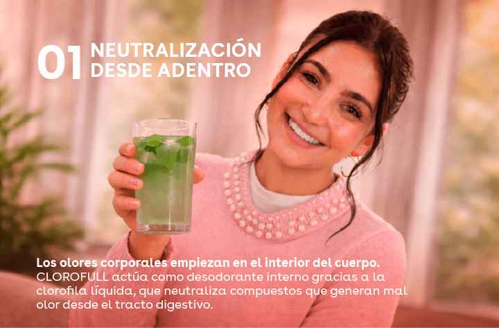 "Muchas personas no saben que ciertos olores corporales persistentes pueden originarse en la digestión y el metabolismo interno. La clorofila líquida actúa como neutralizador natural de compuestos que generan mal olor, complementando la higiene externa con un enfoque interno más efectivo."
