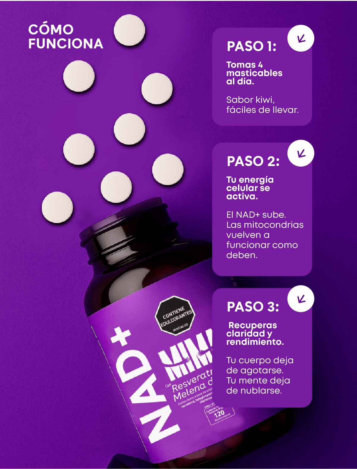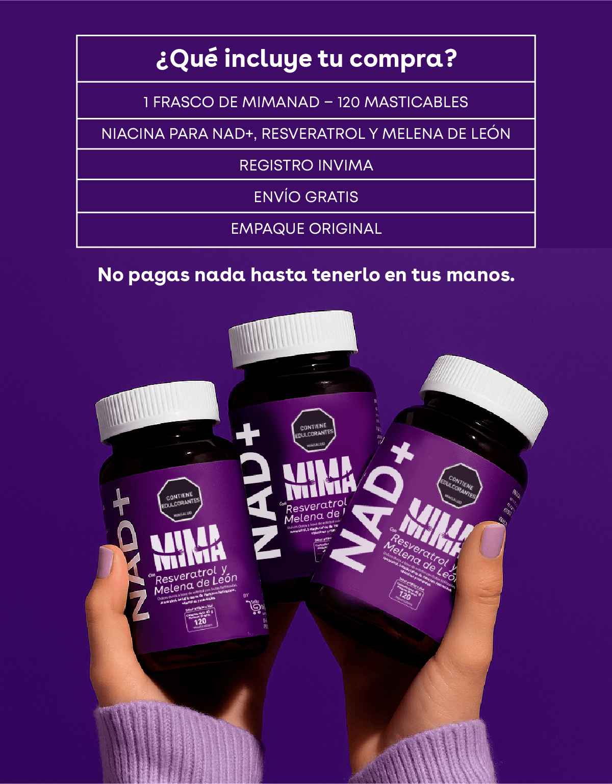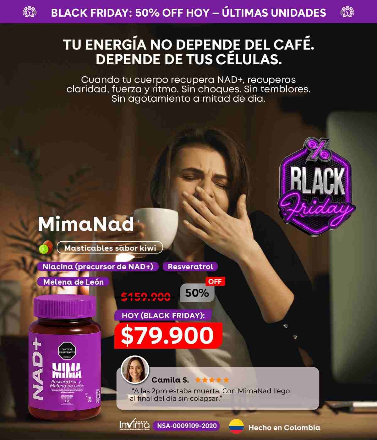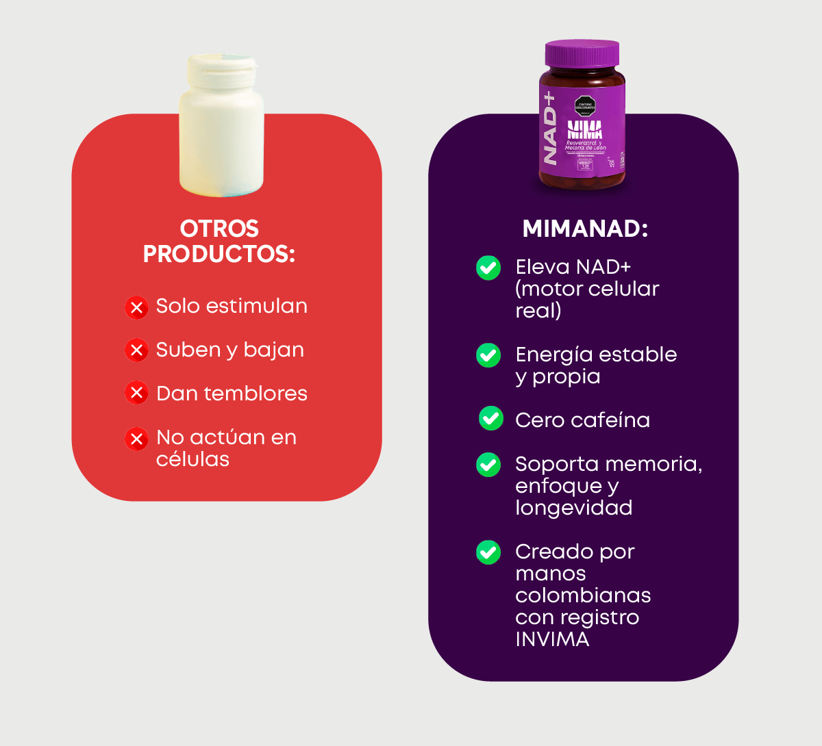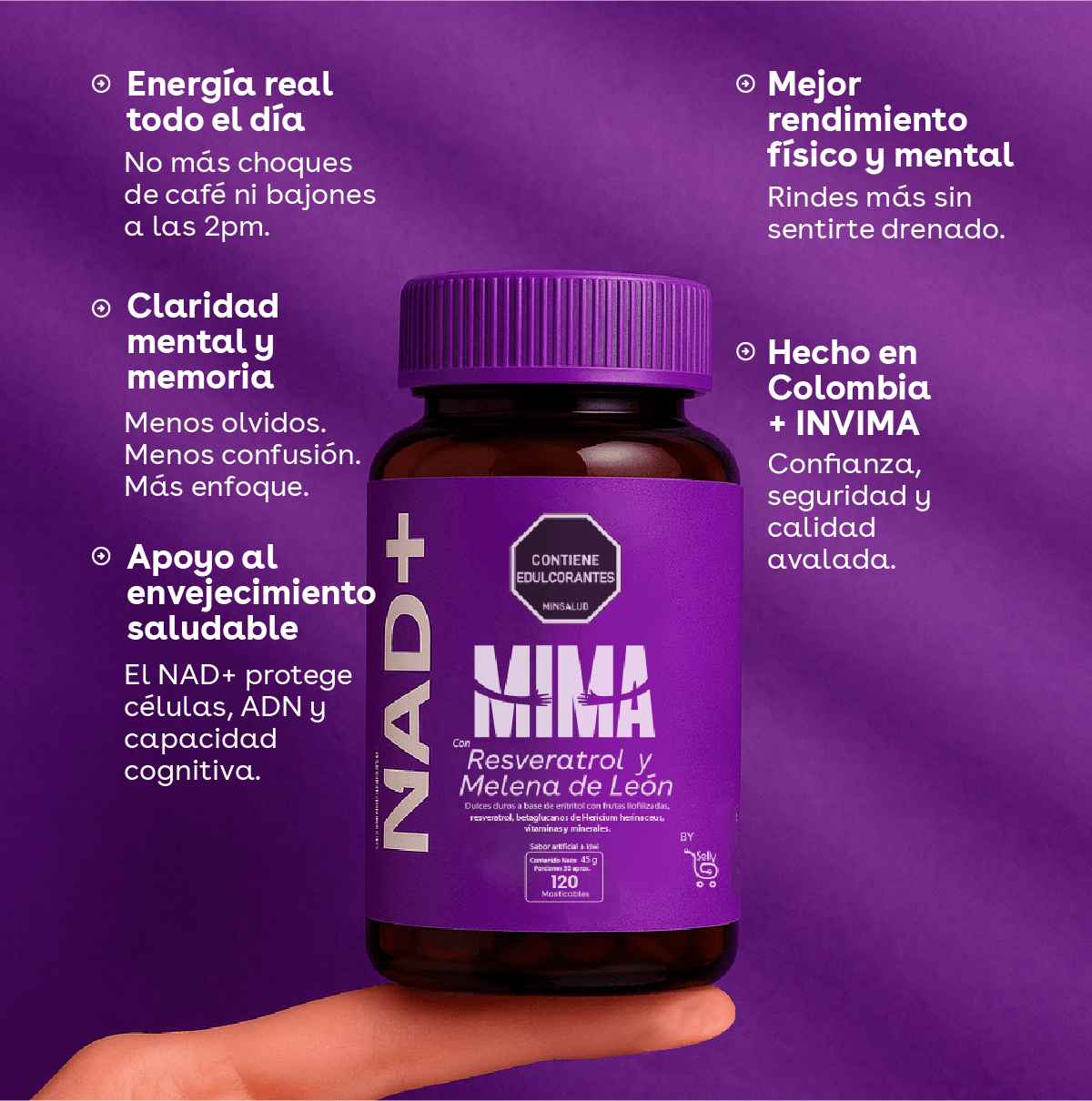 “Mi energía siempre se iba al piso. Con MimaNad rindo bien todo el día y no dependo del café.”