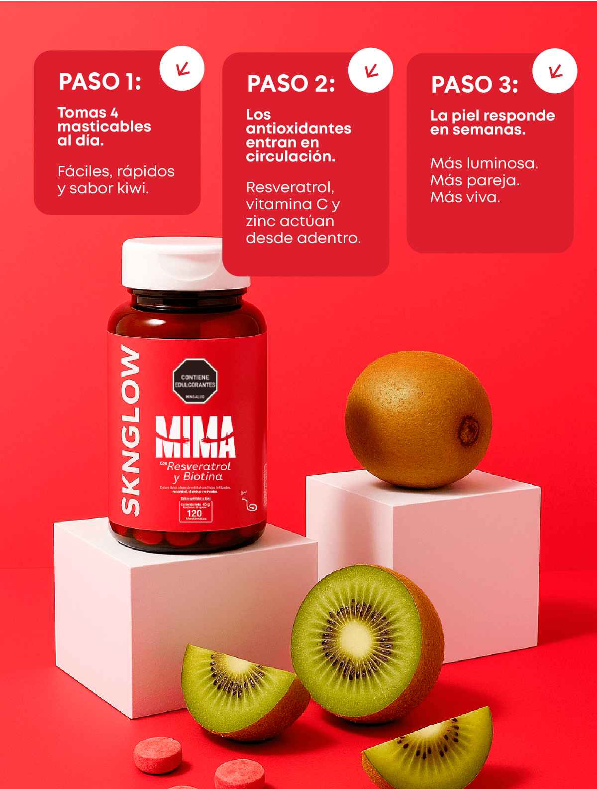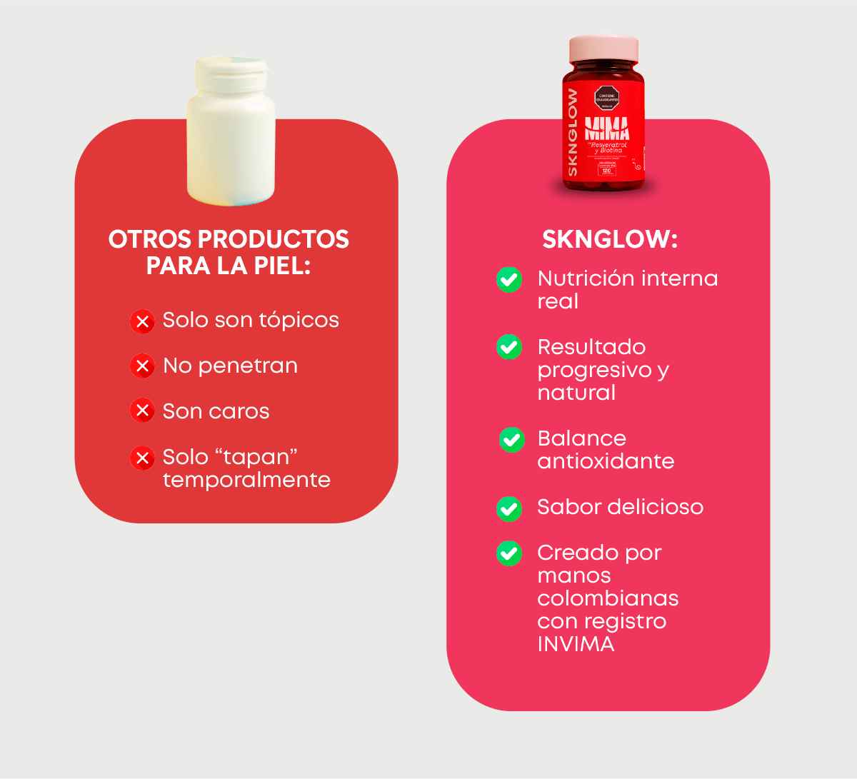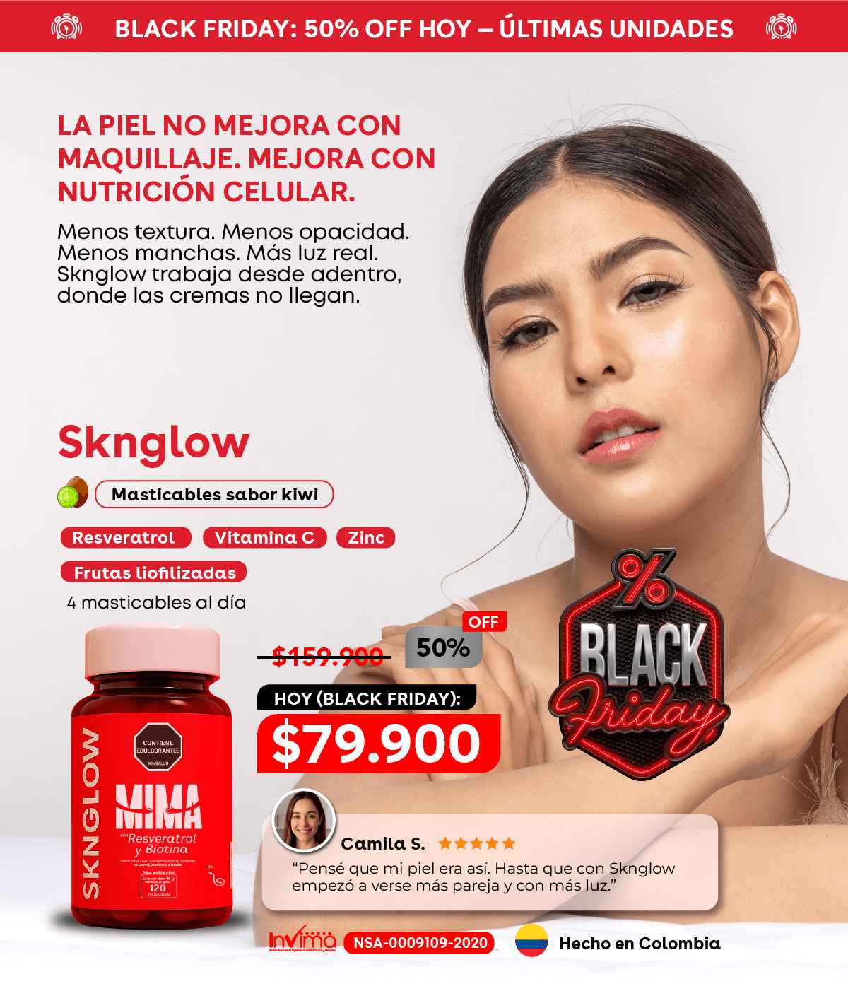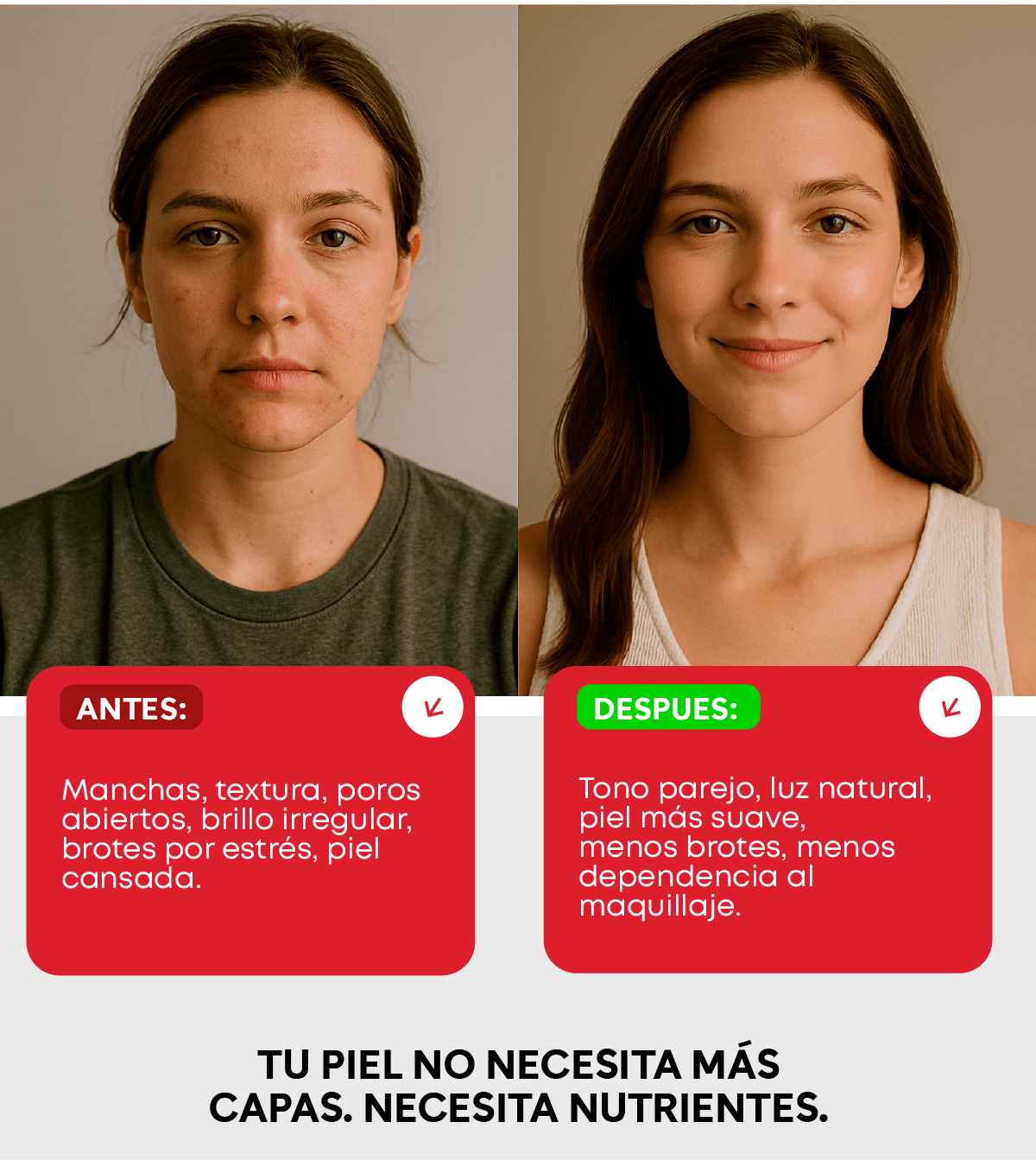 “Tenía brotes constantes por estrés. Con Sknglow se redujeron muchísimo.”